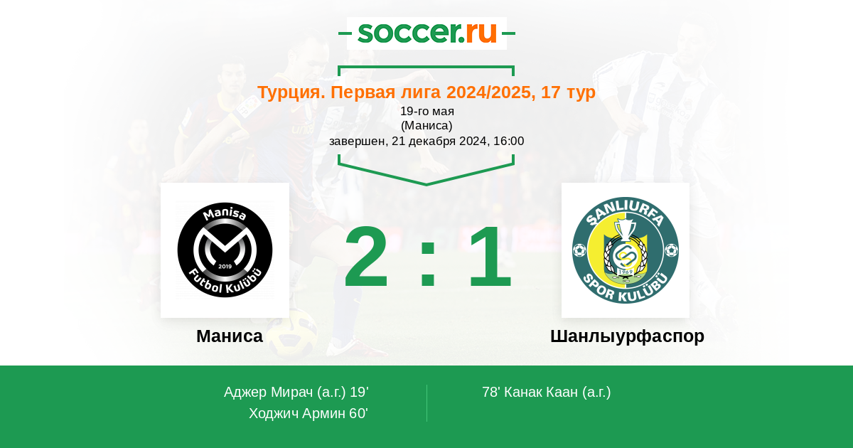 | Маниса | Шанлыурфаспор | |