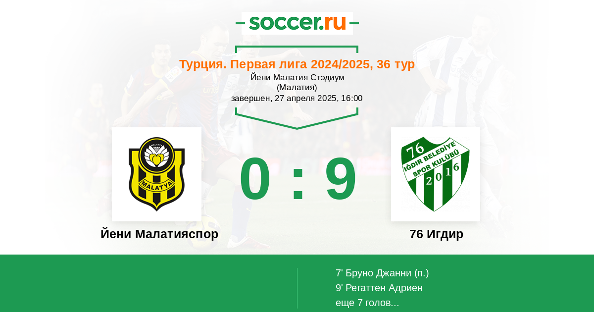 | Йени Малатияспор | 0:3 | 0:0 | 0:3 |