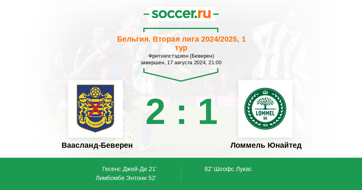 | Ваасланд-Беверен | Ломмель Юнайтед | |