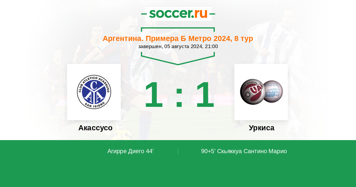 | Акассусо | 24:24 | 13:13 | 11:11 |