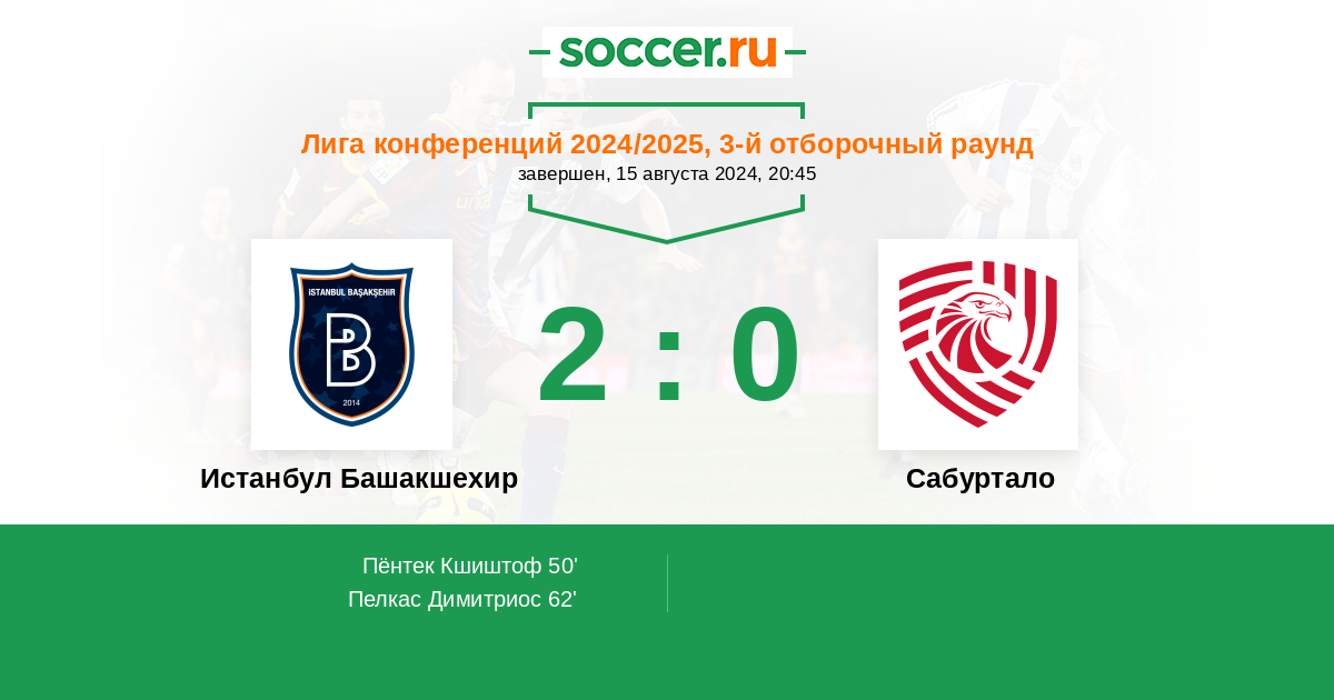 | Истанбул Башакшехир | 1:0 | 0:0 | 1:0 |