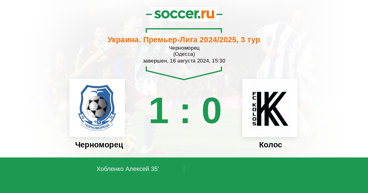 | Колос | 11:9 | 8:4 | 3:5 |