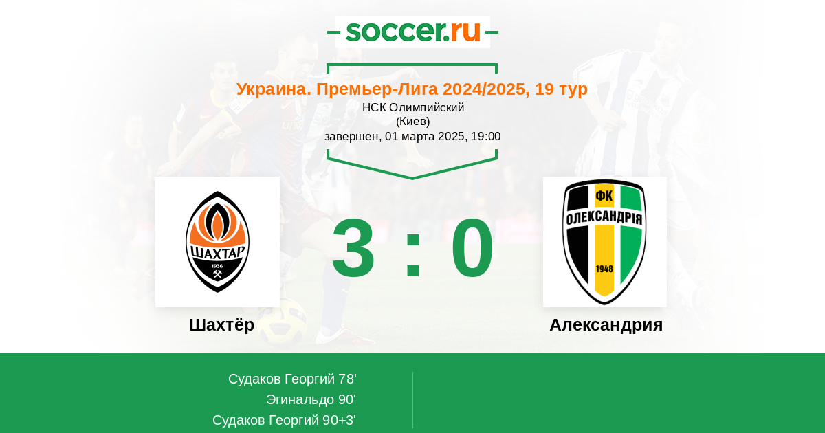 | Шахтёр | Александрия | |