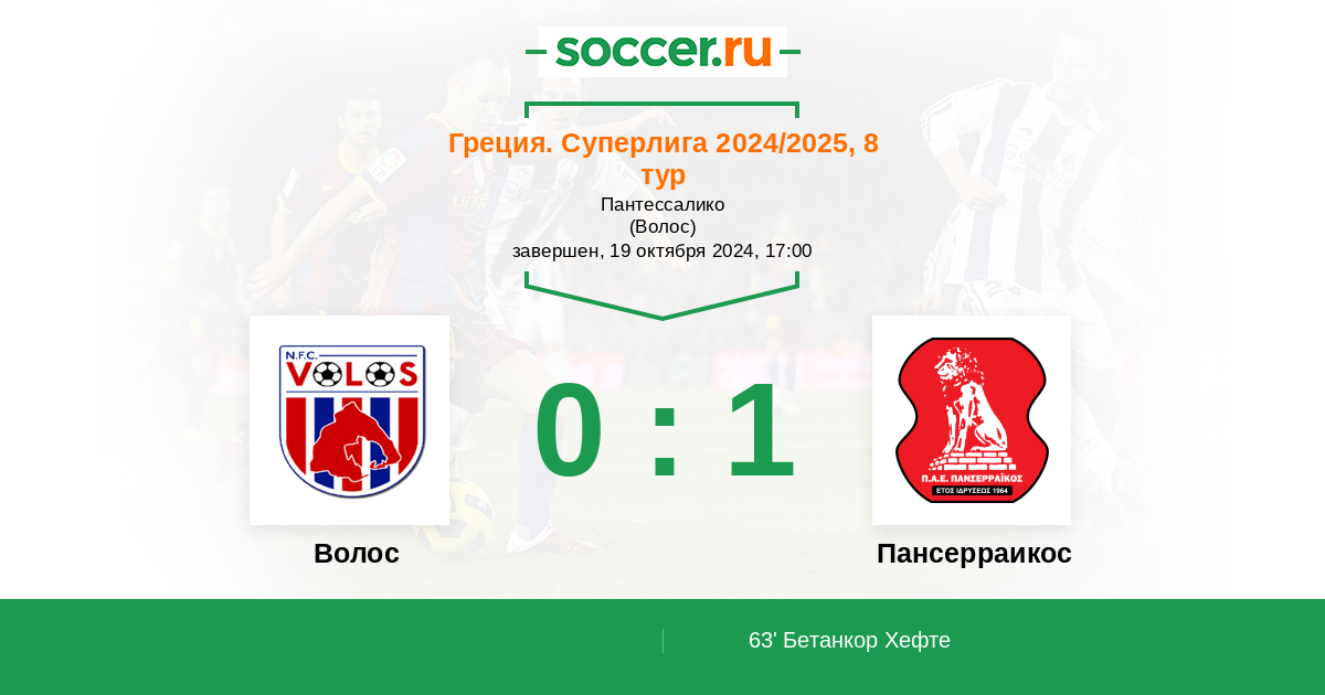 | Волос | Пансерраикос | |