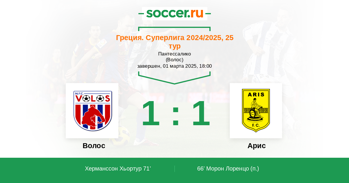 | Арис | 25:9 | 17:5 | 8:4 |