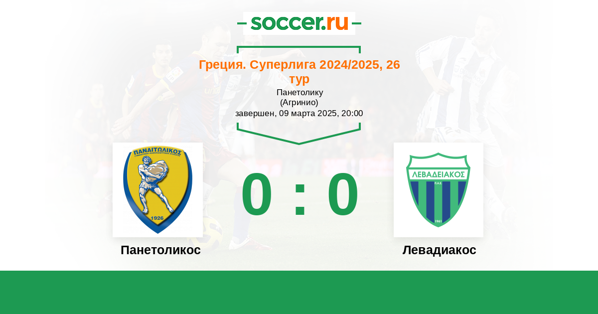 | Левадиакос | 34:26 | 18:9 | 16:17 |