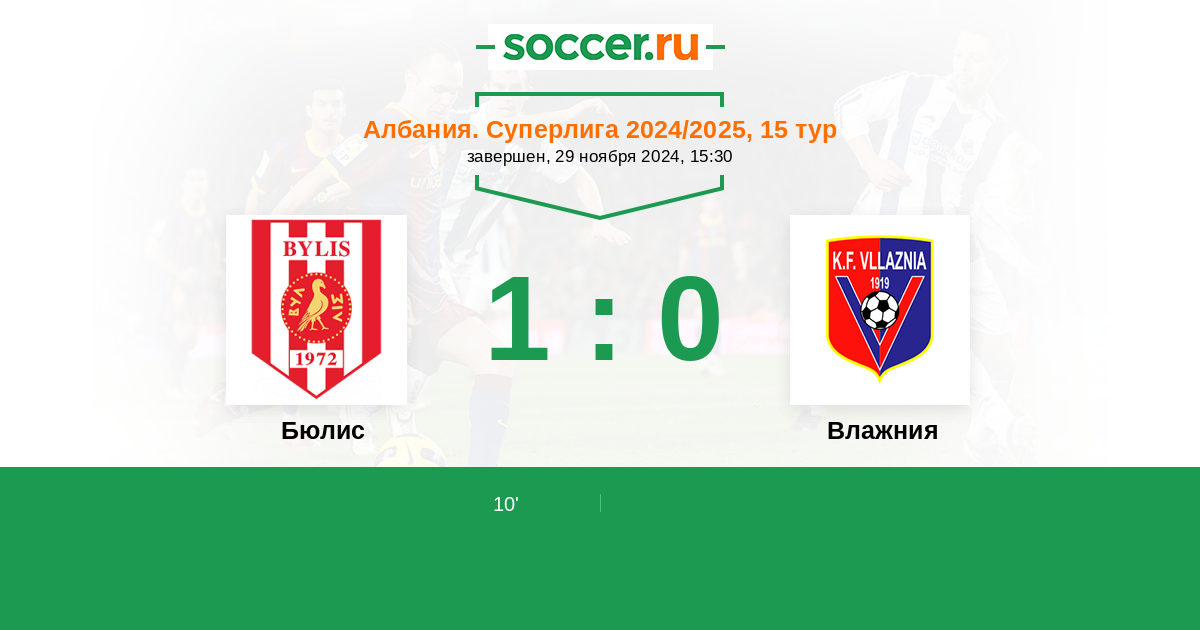 | Албания. Первый дивизион | 1 | 1 | 0 | 0 |