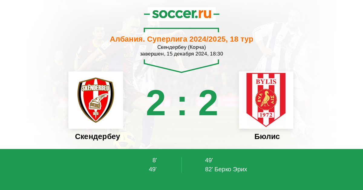 | Албания. Суперлига | 30 | 15 | 9 | 6 |