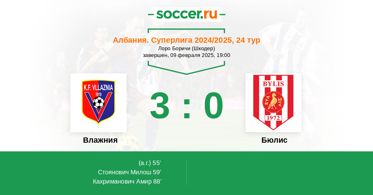 | Албания. Суперлига | 45 | 22 | 12 | 11 |