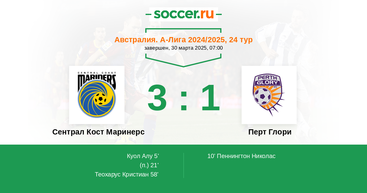 | Сентрал Кост Маринерс | Перт Глори | |