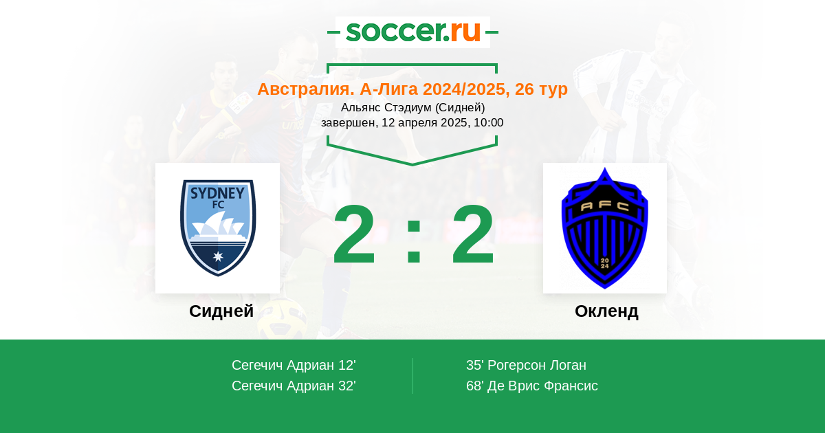 | Сидней | 1:3 | 1:1 | 0:2 |