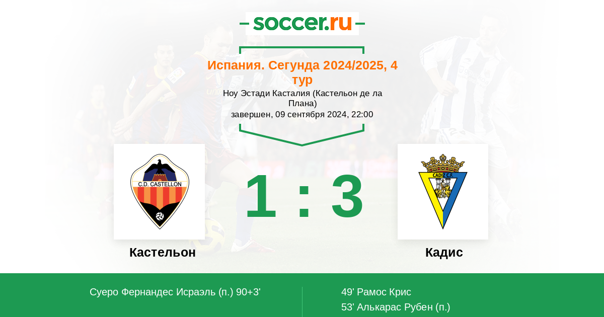| Кадис | 2:0 | 2:0 | 0:0 |