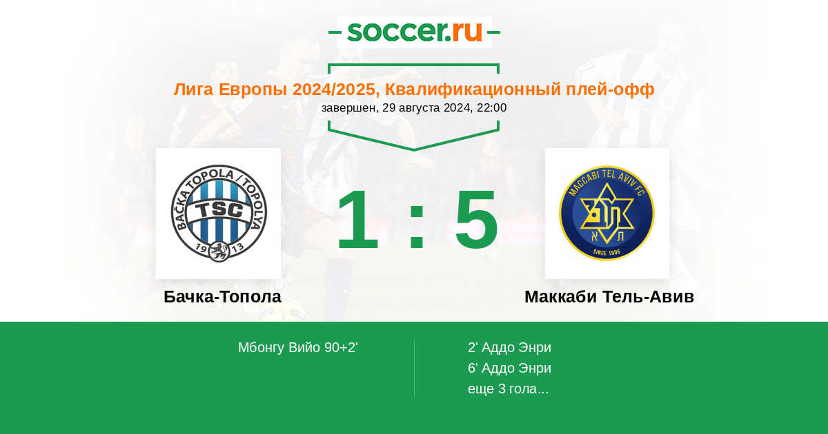 | Бачка-Топола | Маккаби Тель-Авив | |