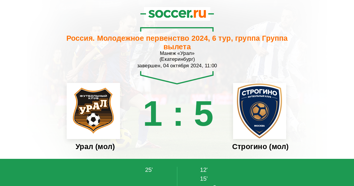| Урал (мол) | 5:15 | 4:5 | 1:10 |