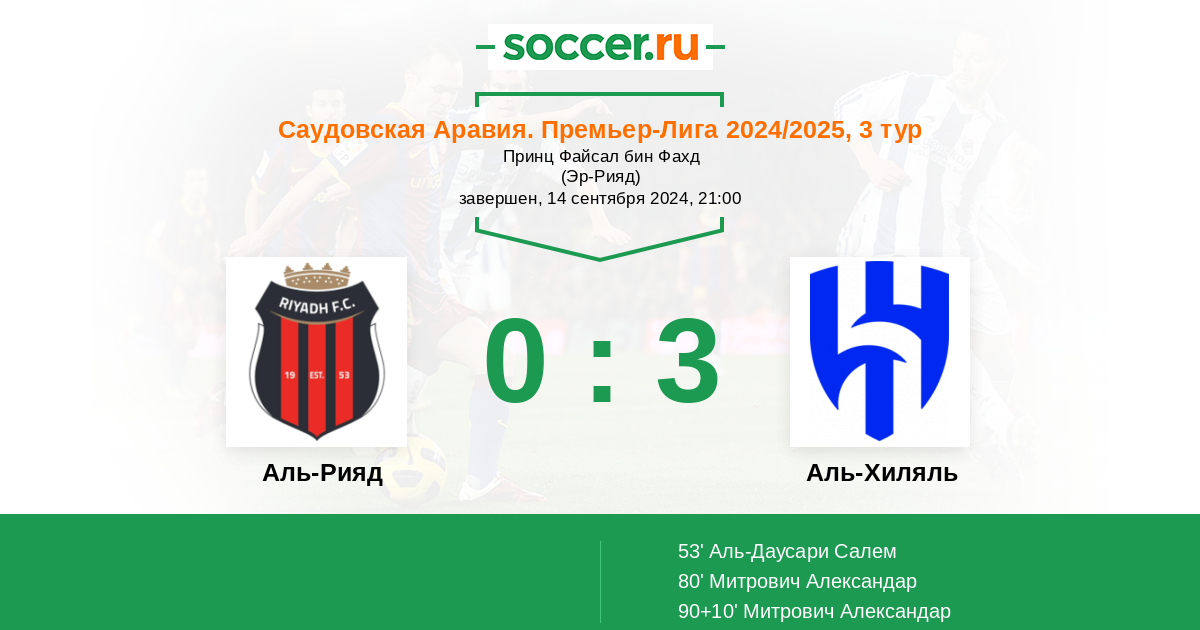 | Аль-Рияд | Аль-Хиляль | |