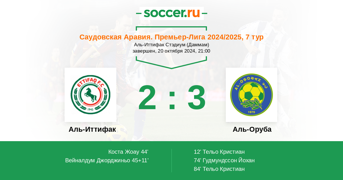 | Аль-Иттифак | 2:1 | 0:0 | 2:1 |