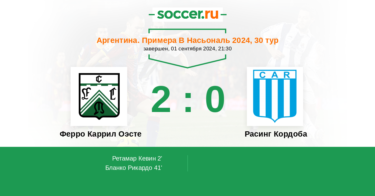 | Ферро Каррил Оэсте | Расинг Кордоба | |
