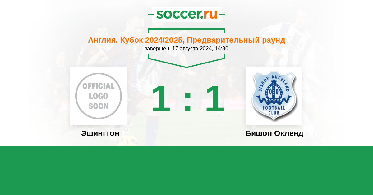 | Эшингтон | 2:1 | 0:0 | 2:1 |
