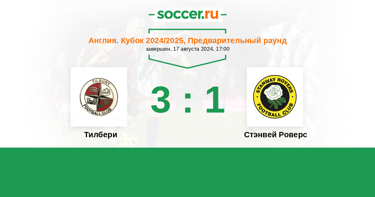 | Тилбери | 3:1 | 3:1 | 0:0 |
