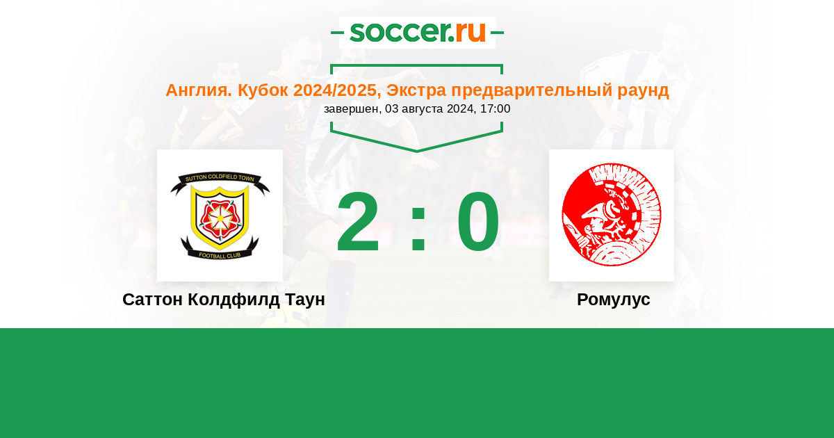 | Саттон Колдфилд Таун | 0:2 | 0:0 | 0:2 |