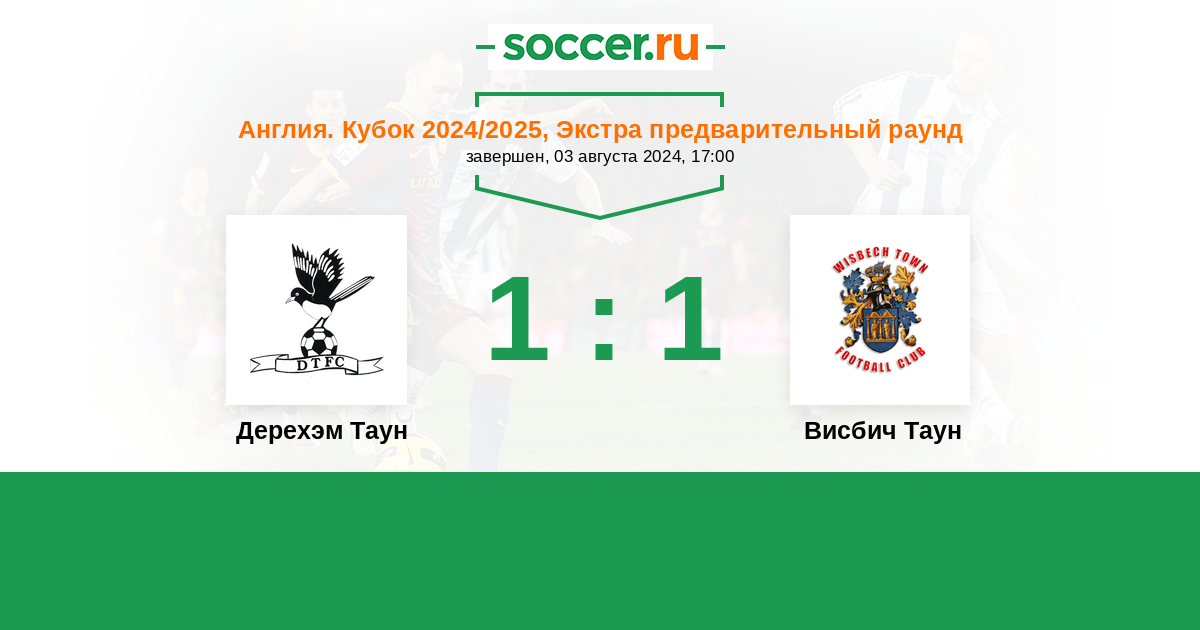 | Дерехэм Таун | 1:0 | 0:0 | 1:0 |