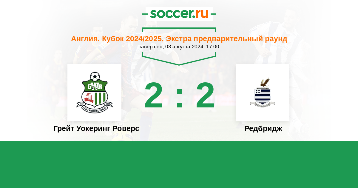 | Грейт Уокеринг Роверс | 0:2 | 0:0 | 0:2 |