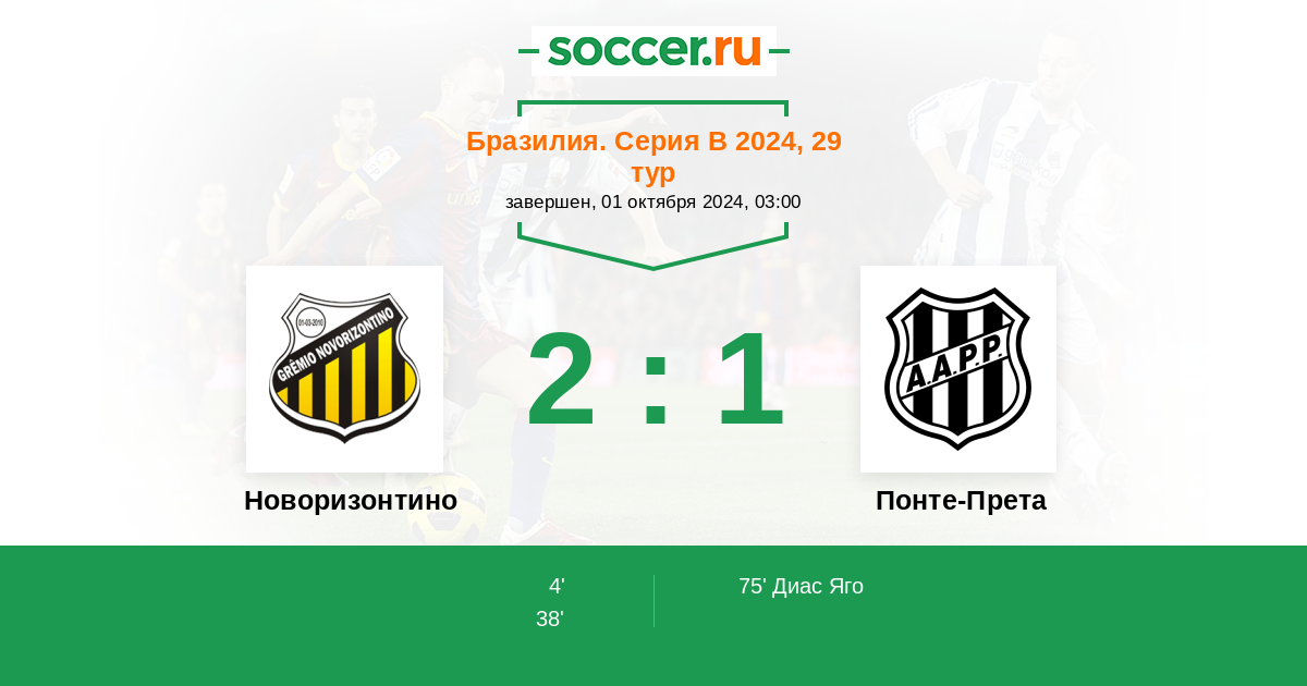 | Бразилия. Серия В | 5 | 2 | 2 | 1 |
