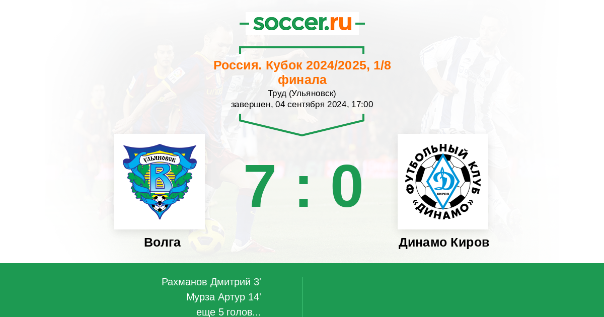 | Динамо Киров | 8:31 | 6:10 | 2:21 |