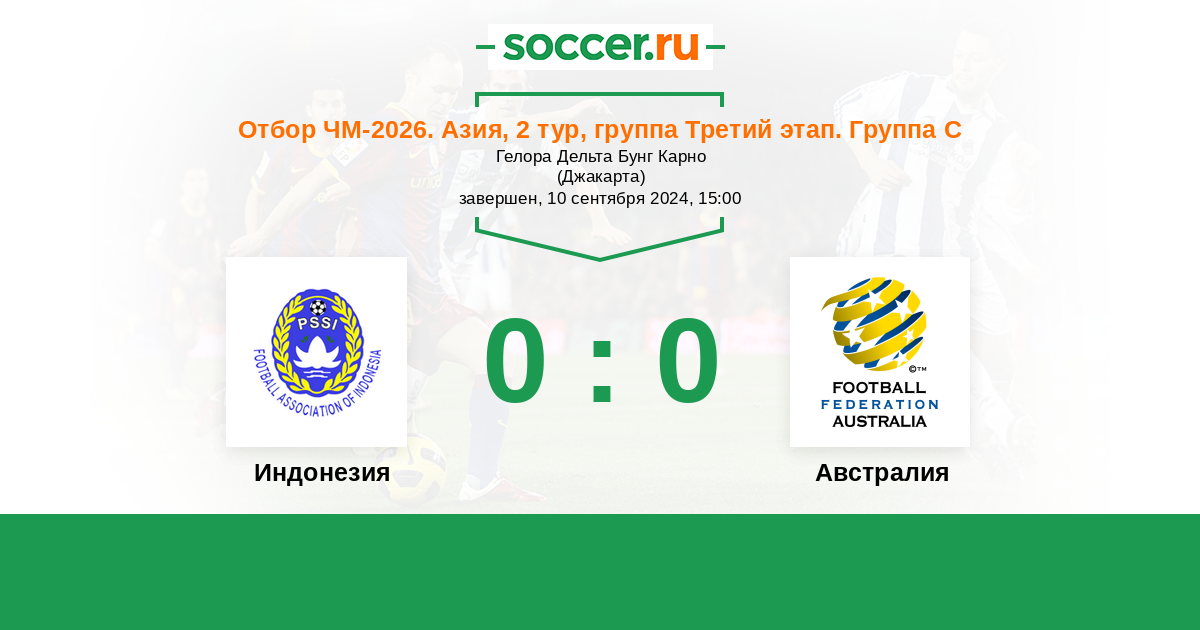 | Индонезия | 1:9 | 0:0 | 1:9 |