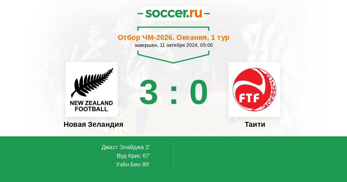 | Отбор ЧМ. Океания | 4 | 4 | 0 | 0 |