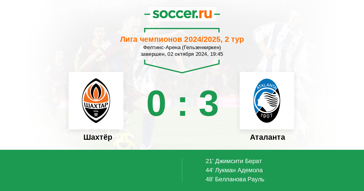 | Аталанта | 4:2 | 1:2 | 3:0 |