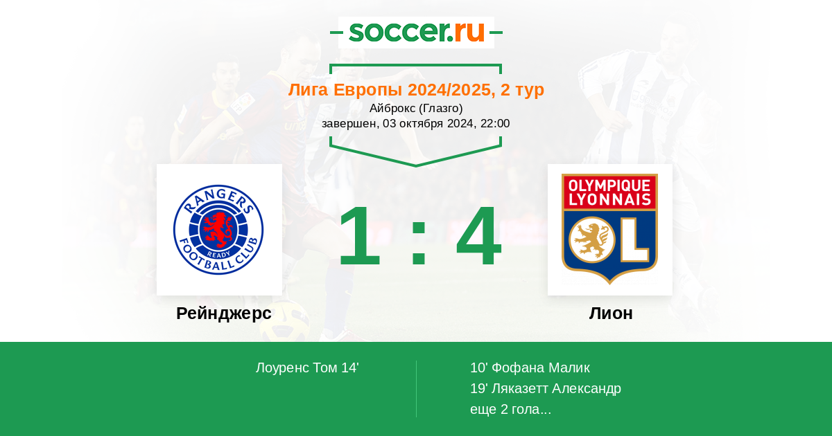 | Рейнджерс | 4:6 | 0:5 | 4:1 |