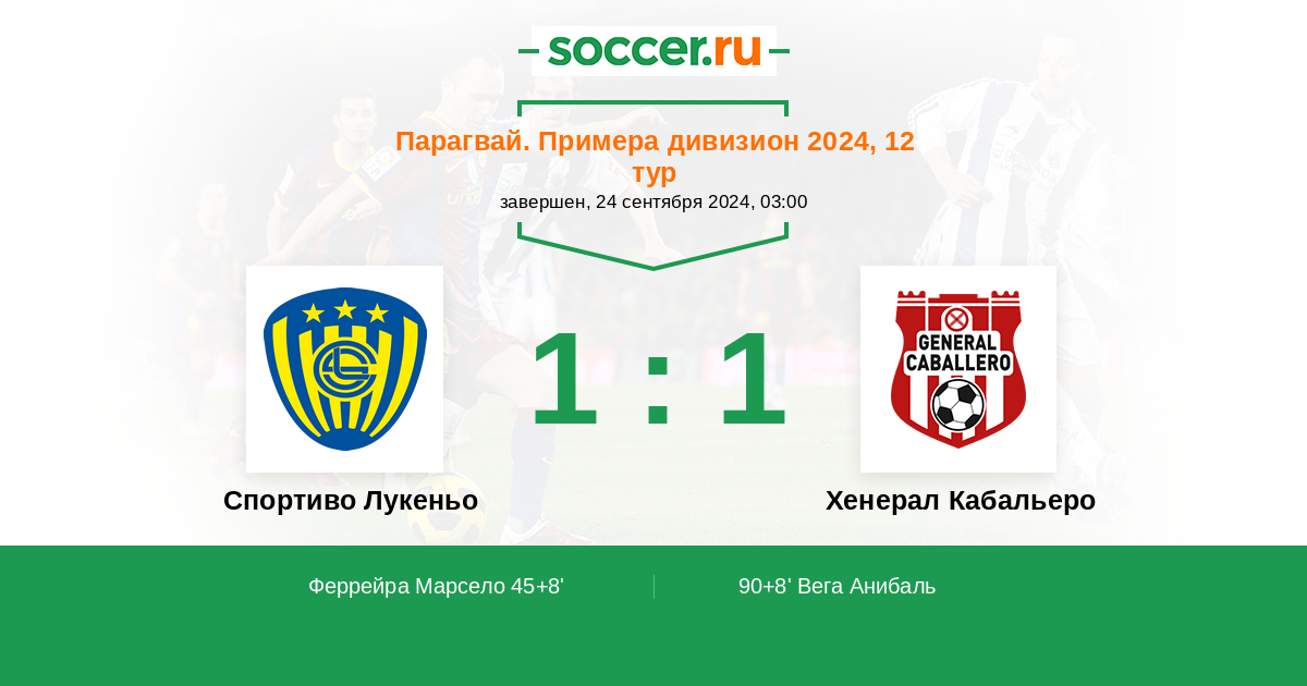 Хенерал Кабальеро 1:2 Спортиво Лукеньо