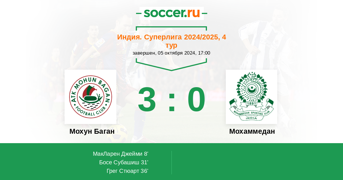 | Мохун Баган | 4:0 | 0:0 | 4:0 |