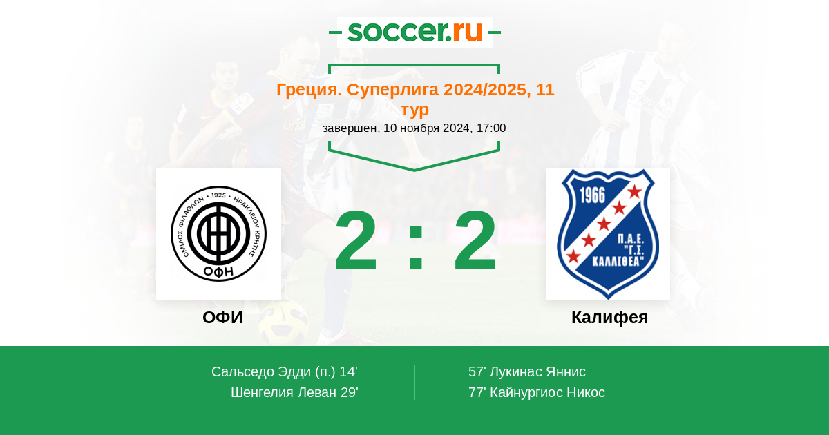 | Калифея | 1:3 | 1:3 | 0:0 |