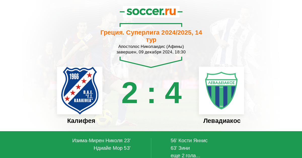 | Левадиакос | 7:1 | 4:1 | 3:0 |