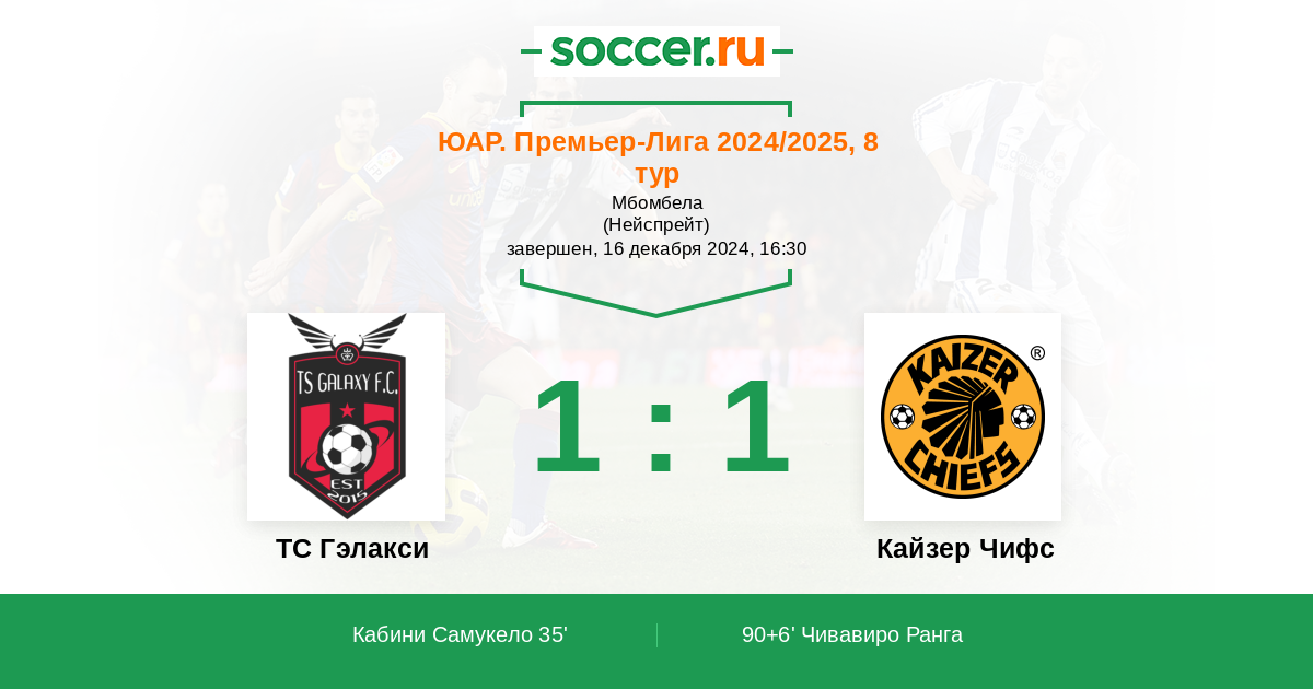 | Кайзер Чифс | 6:6 | 5:5 | 1:1 |