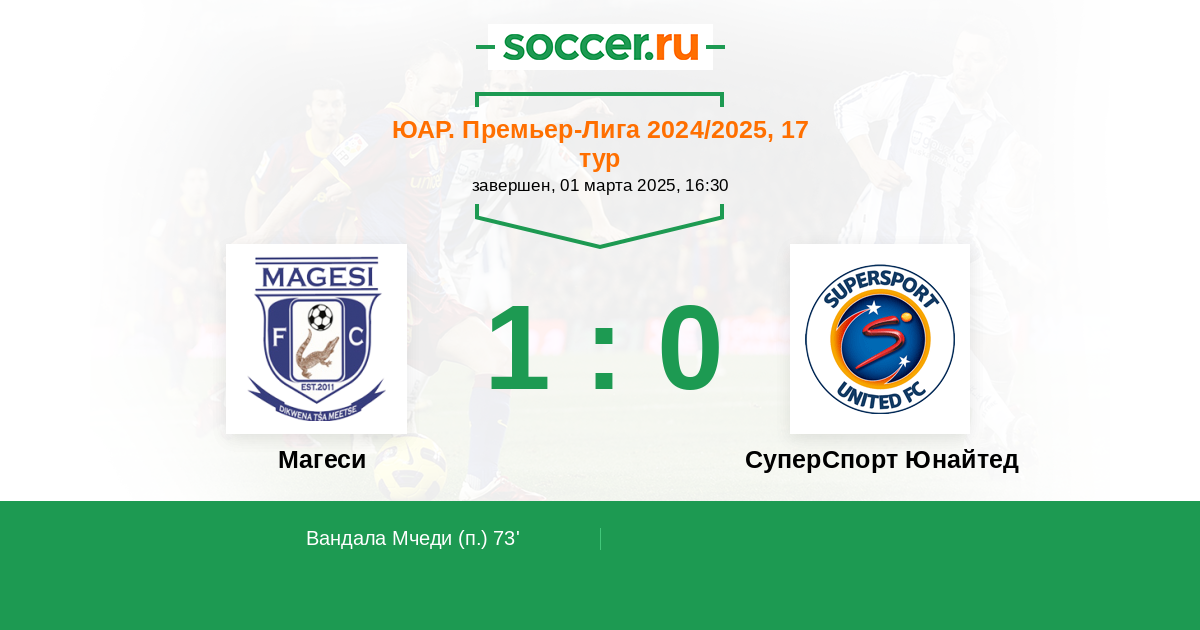 | СуперСпорт Юнайтед | 1:0 | 1:0 | 0:0 |