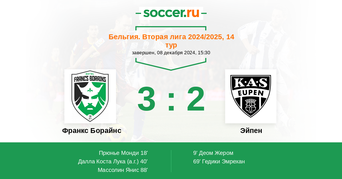 | Эйпен | 6:1 | 3:1 | 3:0 |