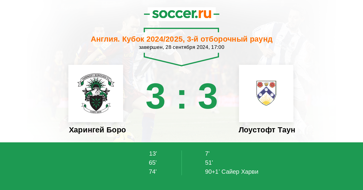 | Харингей Боро | 1:3 | 0:0 | 1:3 |
