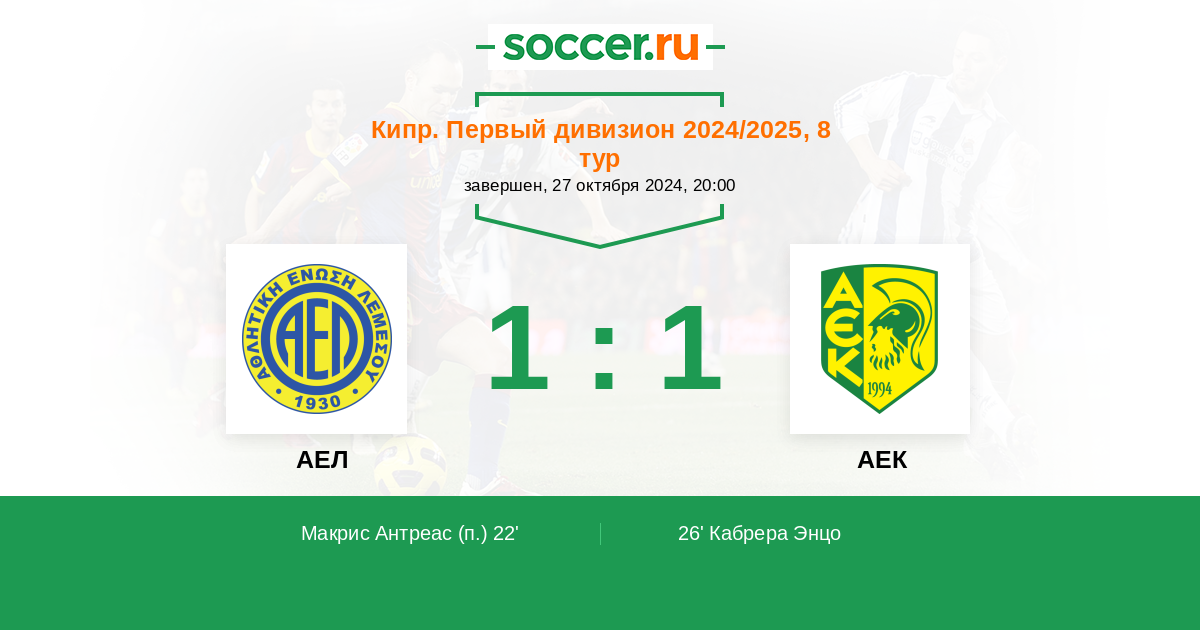 | Кипр. Первый Дивизион | 63 | 19 | 26 | 18 |