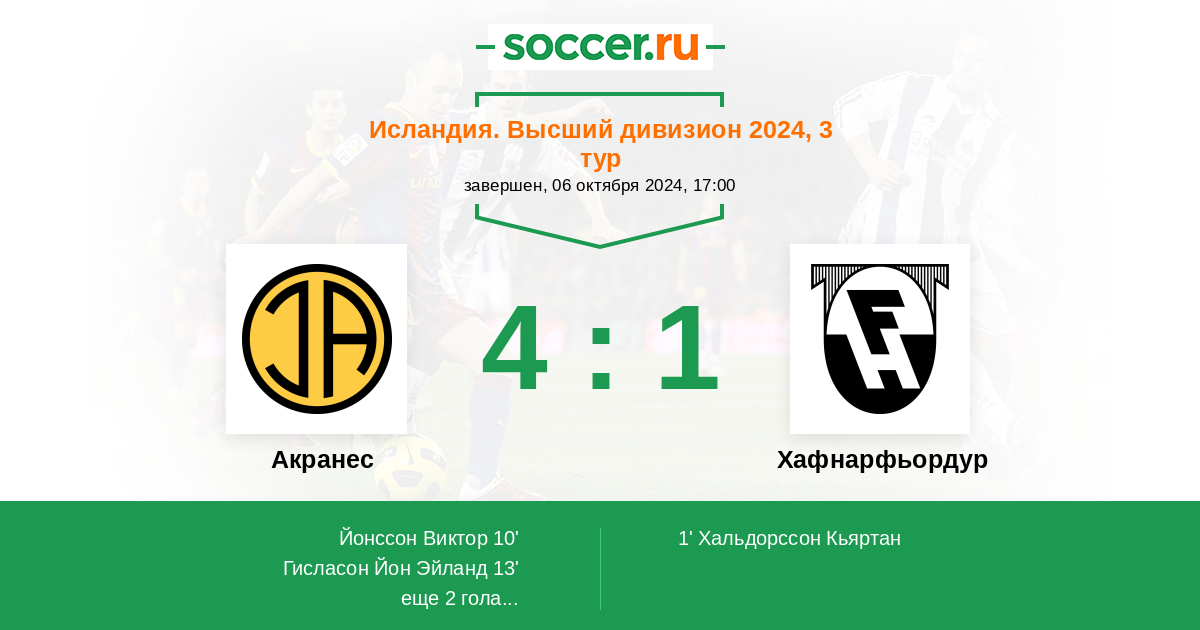 | Акранес | 40:85 | 22:43 | 18:42 |