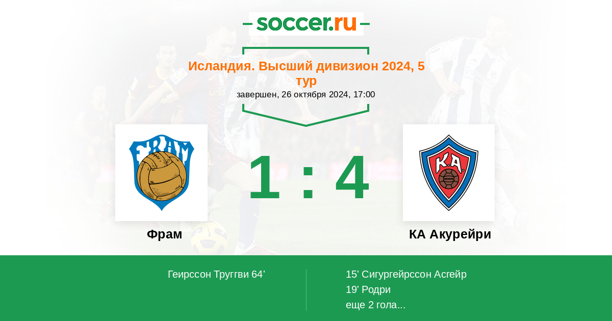 | КА Акурейри | 34:28 | 17:14 | 17:14 |