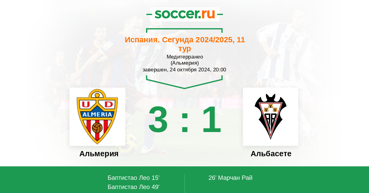 | Альмерия | 26:24 | 18:11 | 8:13 |
