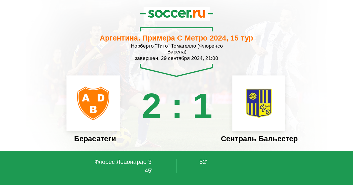 | Аргентина. Примера С Метро | 1 | 0 | 0 | 1 |