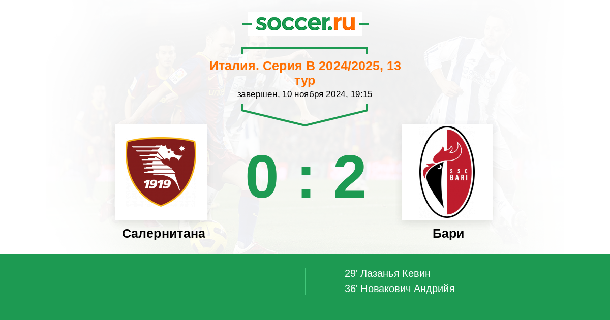Бари 2:0 Салернитана