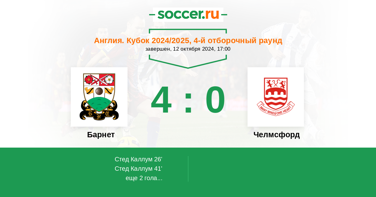 | Барнет | Челмсфорд | |