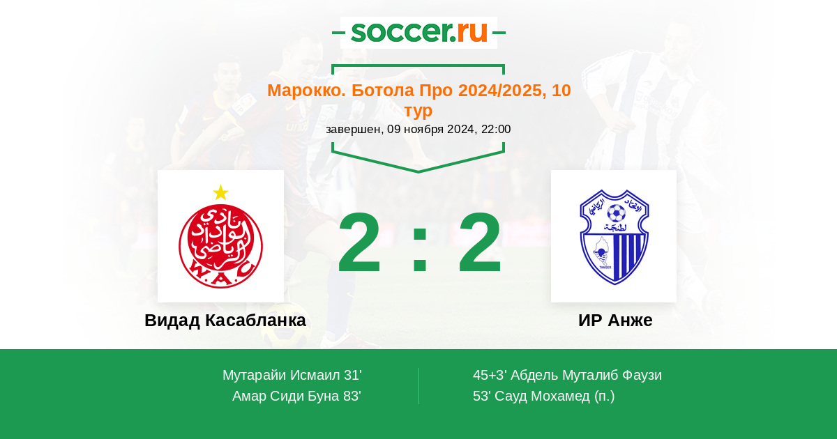 | Марокко. Ботола Про | 26 | 10 | 7 | 9 |