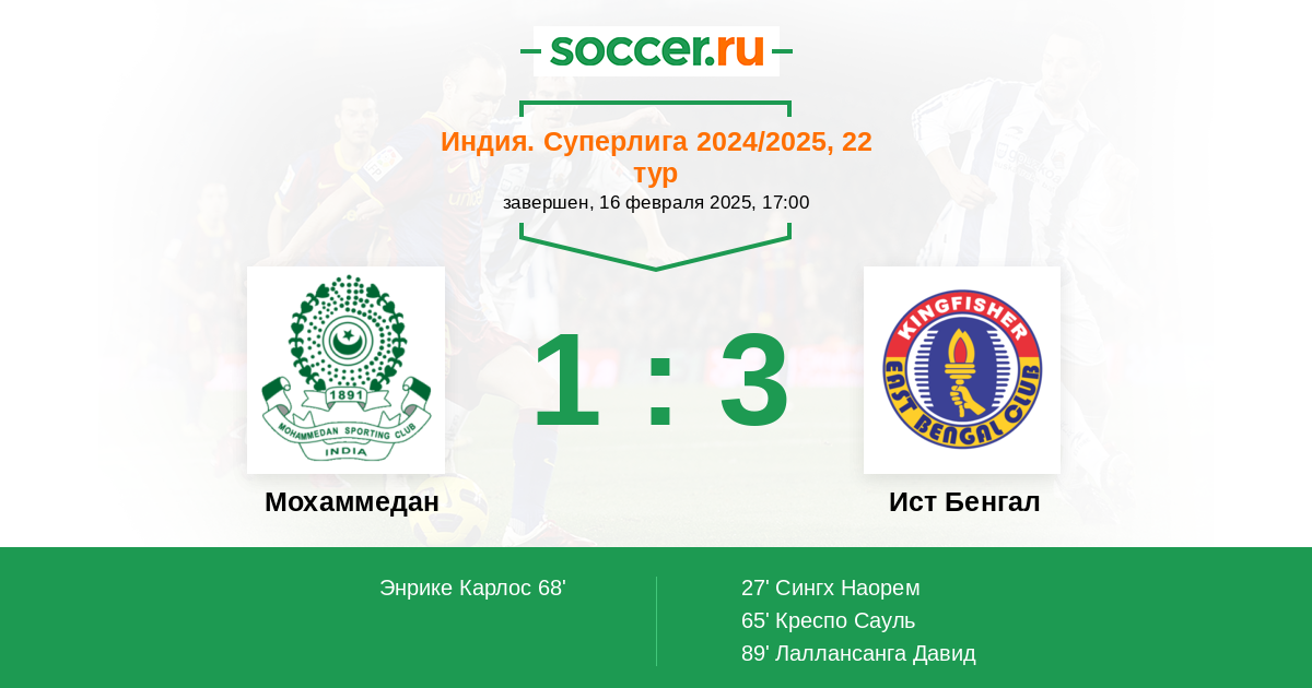 | Индия. Суперлига | 1 | 0 | 0 | 1 |