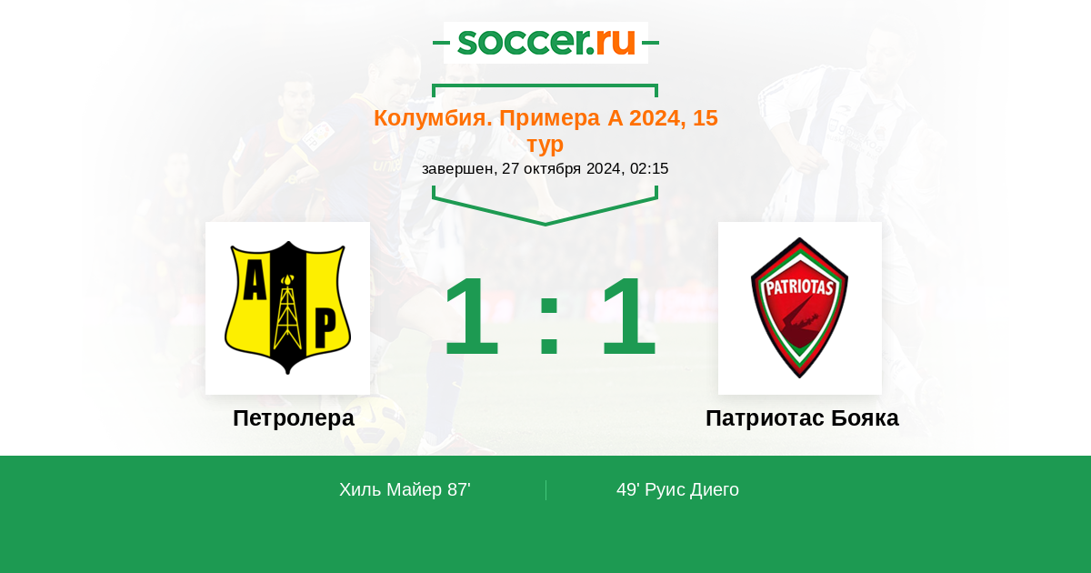 | Петролера | 30:27 | 22:11 | 8:16 |